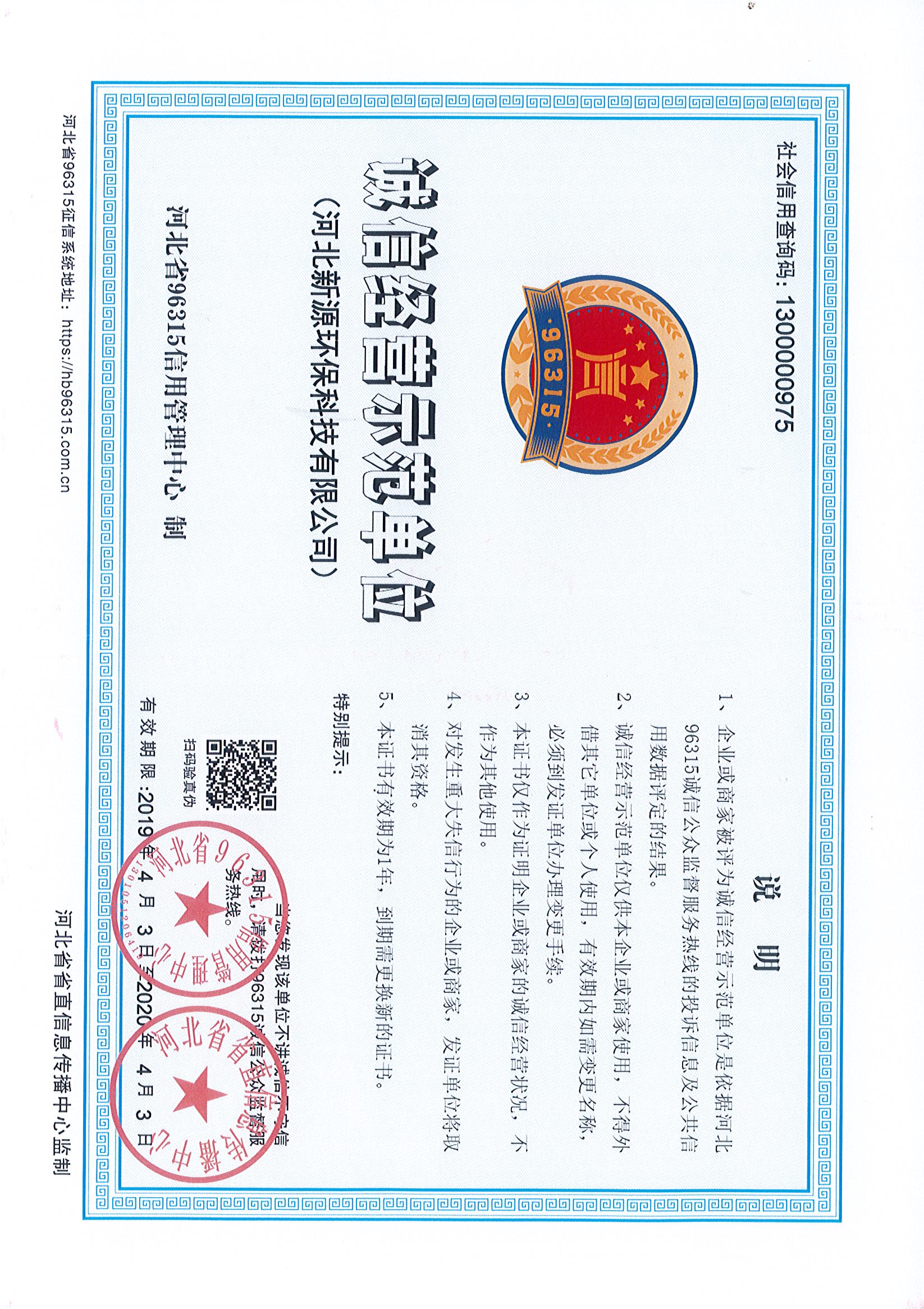 诚信经营示范单位,
